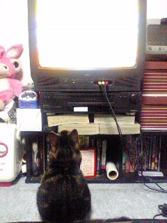 下の方で ぽっこりしてるのが あずきさんの後姿です。しっかりテレビ見てます 可愛い…vV←親バカ笑