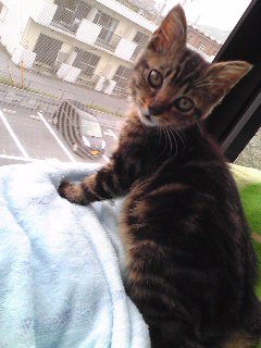 …今 窓際で寝てたのですが、肩に乗ってきて 頭ゴッツンゴッツンしに来ました。ノドごろごろしてる― 可愛いです あぁあもう可愛い―!!!!