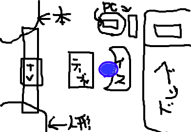大抵その青丸の所で 膝を抱えながらマウスとか弄ってます。漫画読んでます。ミシンしてます。飯食ってます。