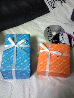 添付画像はプレゼントです。オレンジの方がママ。ブルーがパパ。