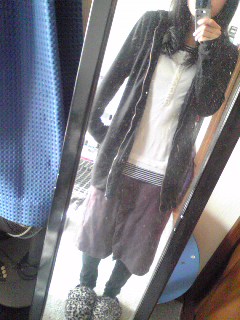 このスエット地のスカートは、私が持ってる服の中でも珍しい色合い。