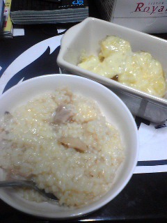 米が ジャーで炊くには少ない量だったので、リゾットにしました。美味いー(*´∀`*)